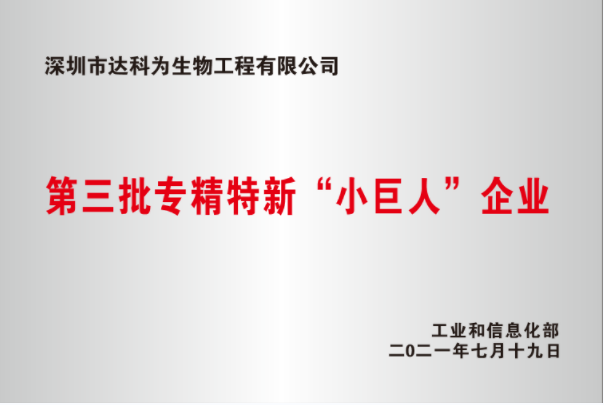 2021-01 2021年生物工程P2實(shí)驗(yàn)室啟用,同年入選專(zhuān)精特新小巨人企業(yè)